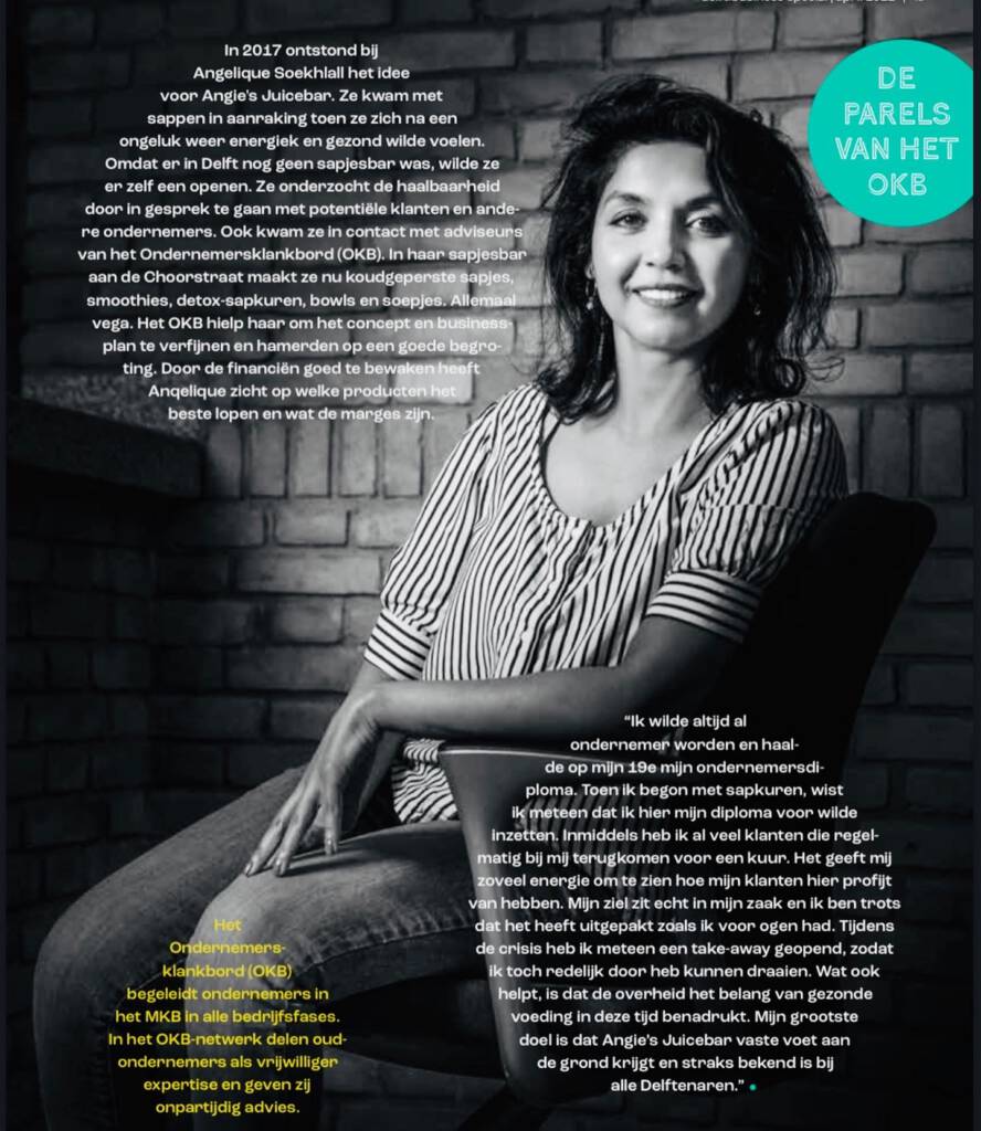 Een aantal jaar geleden ontstond bij mij het idee voor Angie’s Juicebar. Ik kwam met sappen in aanraking toen ik na een ongeluk mij weer energiek en gezond wilde voelen. Omdat er in Delft nog geen sapjesbar was, wilde ik er zelf een openen. In januari 2019 opende ik mijn Juicebar in de Choorstaat 7 in Delft. Daar maken we gezonde lunches, koudgeperste sapjes, smoothies, detox-sapkuren, bowls en soepjes. Allemaal vega en vers (en met liefde) bereid.